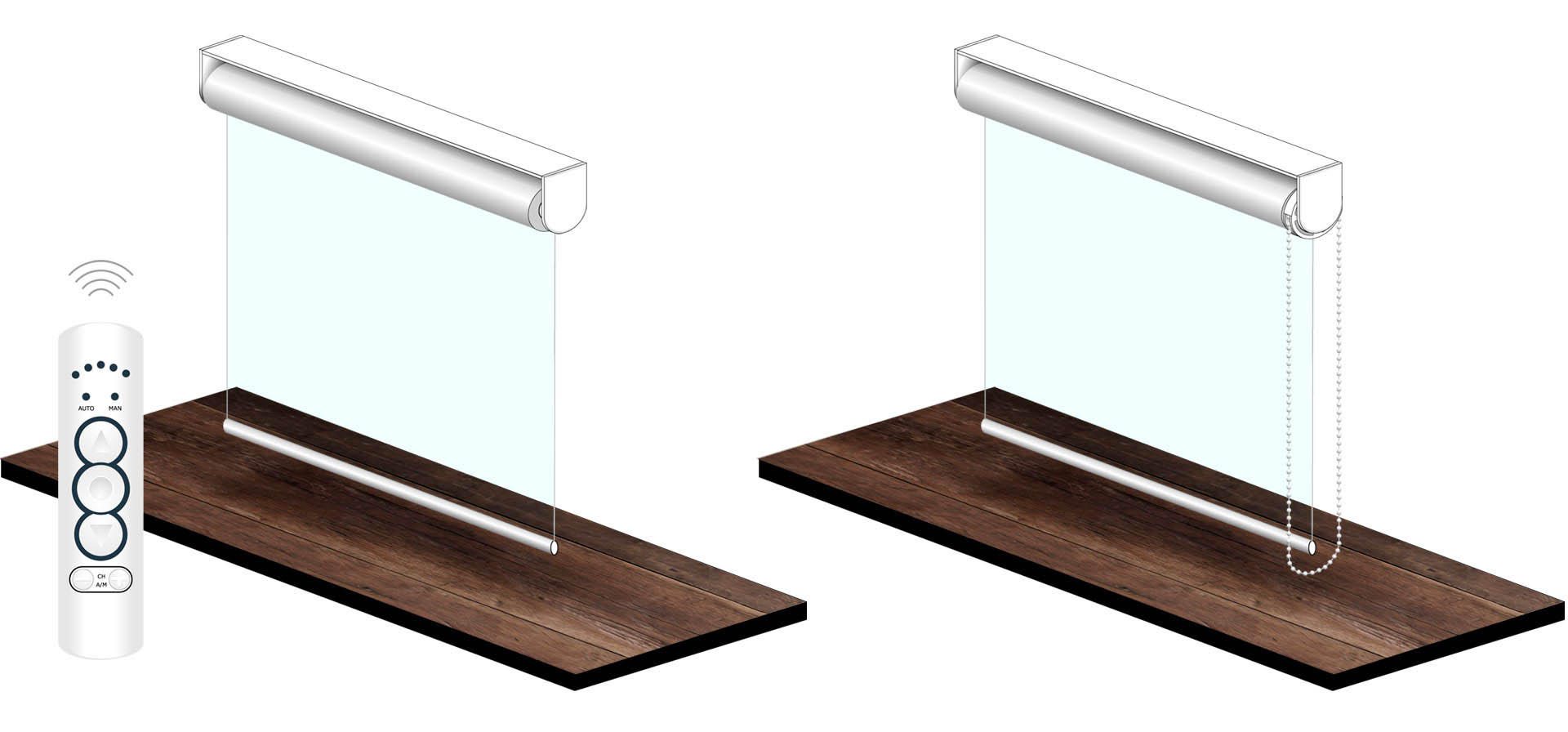 Das Rollo ist in verschiedenen Bedienvarianten lieferbar.